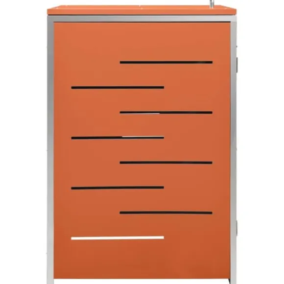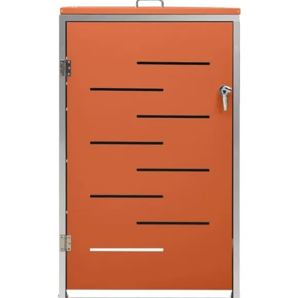 Sopskjulet är tillverkat av galvaniserade stålpaneler och en ram av rostfritt stål, vilket gör det mycket robust och rostbeständigt. Den ihåliga designen släpper in luft och förhindrar otrevliga lukter, medan låset säkerställer säker förvaring av soporna. Dessutom gör det praktiska locket och fjädrarna det enkelt att ta ut och sätta in sopkärlet.
