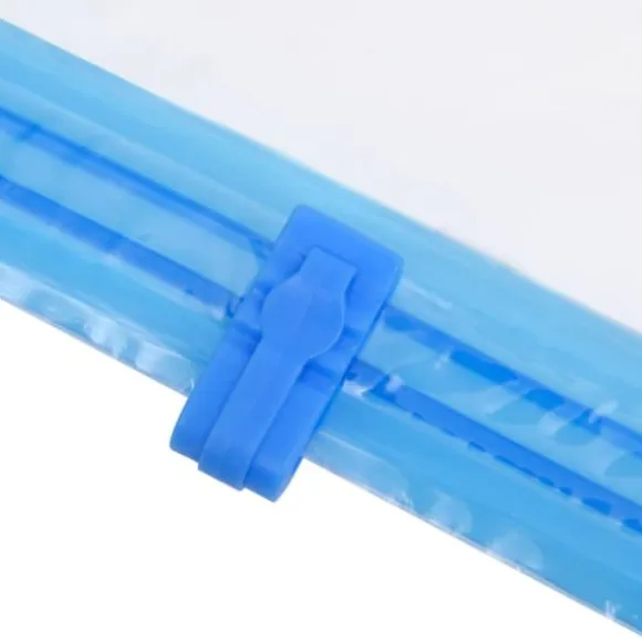 Påsen, tillverkad i plast, är vattentät och mögelfri. Den är enkel att använda, bara öppna påsen, förvara föremål, stäng påsen och dammsug. Skjutreglaget gör att du snabbt och enkelt kan stänga och öppna påsen. Denna komprimerade påse är också lätt att rengöra och kan återanvändas. Leveransen innehåller 2 storlekar för att passa olika behov. Vänligen observera: Pump ingår ej.