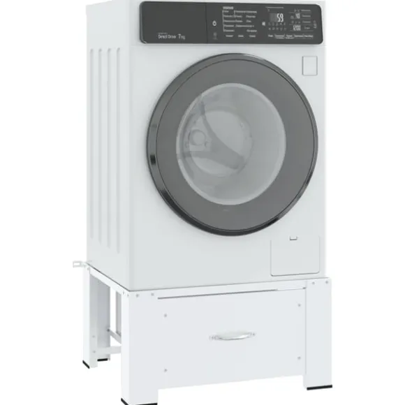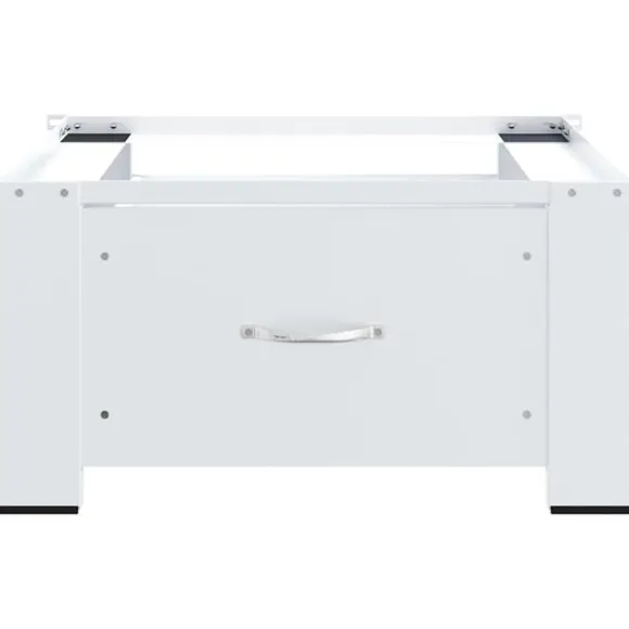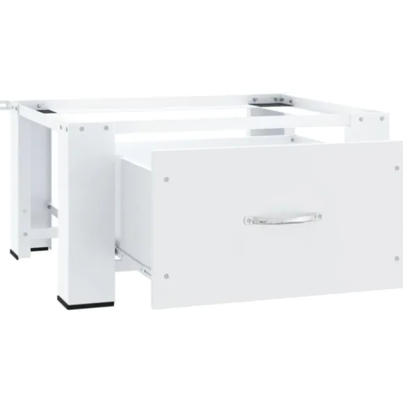 Denne vaskemaskinesokkel med skuffe er designet til at holde apparater som vaskemaskiner væk fra gulvet og hæve dem til en mere passende arbejdshøjde.