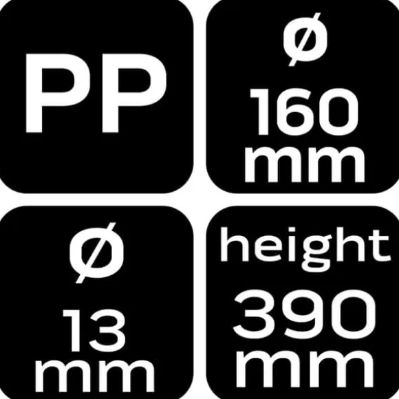 Den vinklade tratten 11-553 från NEO TOOLS på 160 mm och 1,2 l, med en diameter på 160 mm, en höjd på 390 mm och en pipdiameter på 13 mm, är utformad för att hälla vätskor på svåråtkomliga ställen. Tillverkad av lättrengjord PP, har den en kapacitet på 1,2 liter, en hög överfyllningskant och ett ergonomiskt handtag. Den smala pipen möjliggör åtkomst till svåråtkomliga områden, medan dess motståndskraft mot oljor, syror och bränslen gör den lämplig för krävande industriella och verkstadsapplikationer. NEO TOOLS vinklade tratt rekommenderas för mekaniker och gör-det-själv-entusiaster.