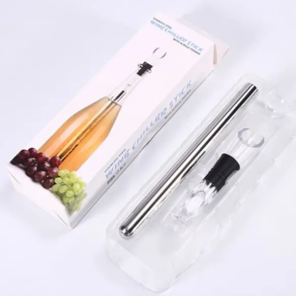 Wine Chiller Stick, en kombination av vinflaskkylare, filter och hällrör, låter dig njuta av ett glas perfekt kylt vin vid optimal temperatur. Dess eleganta design kommer att förfina din vinupplevelse och är den perfekta presenten för vinälskare.
