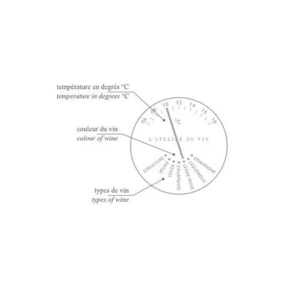 Vintermometern från Atelier du Vin hjälper dig att njuta av dina viner i idealisk temperatur. Ett oumbärligt tillbehör för vinälskare, det garanterar en optimal smakupplevelse. Ge det som present eller unna dig själv detta ovärderliga verktyg.
