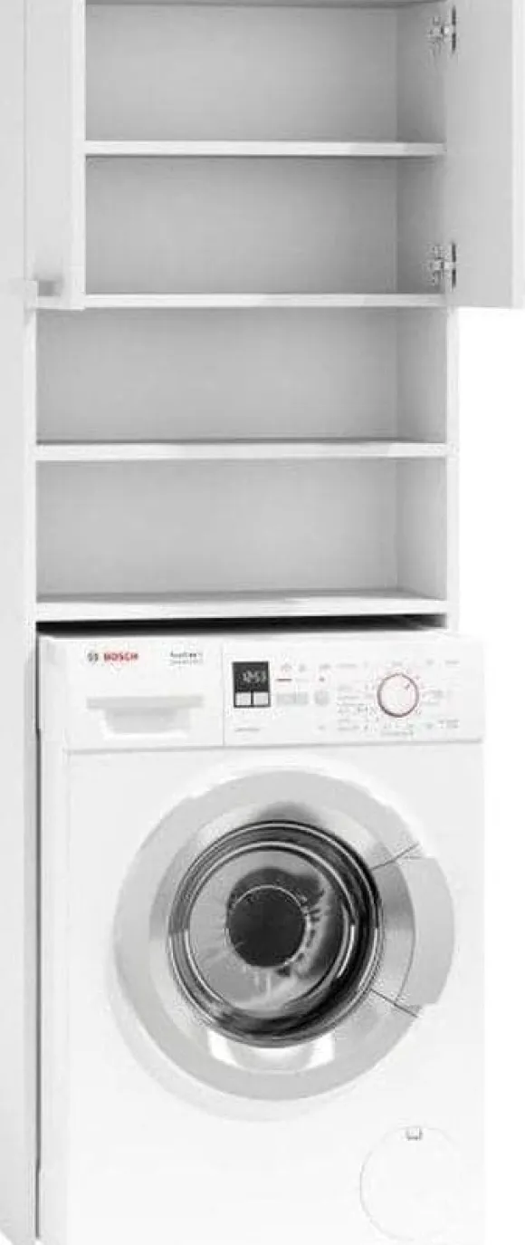 Detta praktiska förvaringsskåp är speciellt utformat för att organisera ditt badrum eller tvättstugan mer effektivt. Perfekt för att förvara städutrustning, handdukar eller andra nödvändigheter, gör detta skåp optimal användning av utrymmet ovanför din tvättmaskin eller torktumlare.