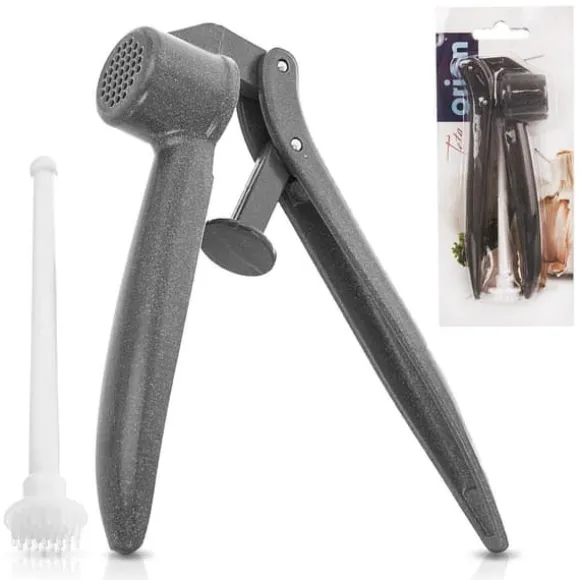 Vitlökspress i aluminium med praktisk rengöring. Tillverkad av material av högsta kvalitet. Denna press ersätter det mödosamma rivandet eller hackandet av färsk vitlök med en kniv. Lätt att använda och rymmer en hel vitlöksklyfta. Designen säkerställer exakt vitlökspressning och gör det också enklare att rengöra pressen från eventuell kvarvarande vitlök. Användbar i alla kök. Tillverkad av hälso- och livsmedelssäkra material. Originalprodukt från det tjeckiska märket Orion. Tillverkad i enlighet med europeiska standarder.