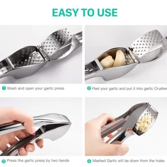 Denna professionella vitlökspress i zinklegering är robust och hållbar. Med en ergonomisk design gör den enkel att krossa vitlök samtidigt som den tål diskmaskin för enkel rengöring. Mått: 15,8cm x 4,3cm, nettovikt 230g. Ett viktigt verktyg för effektiv matlagning.