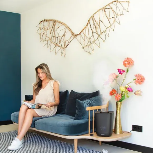 Tack vare det 360° roterbara munstycket kan du rikta dimutloppet i valfri riktning. På så sätt kan du placera luftfuktaren var du vill utan att dimman kommer i vägen. Den stora vattentanken på 4,5 liter räcker länge. Om luftfuktaren mot förmodan skulle ta slut, oroa dig inte. En låg vattennivå visas tydligt på displayen och det inbyggda skyddssystemet stänger automatiskt av maskinen.