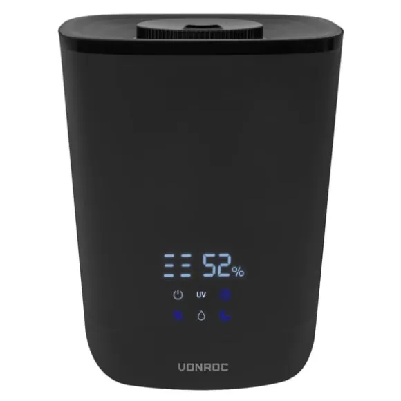 Må bra med VONROC! Med denna luftfuktare håller du luftfuktigheten i ditt hem på en perfekt nivå. Rätt luftfuktighet förebygger obehag som torr hud och irriterade ögon. Det minskar även statisk elektricitet i luften och hjälper till att bevare trä och lädermöbler och dina älskade krukväxter kommer att älska det. Allt som allt skapar du en behaglig boendemiljö med denna luftfuktare, gör det tillsammans med VONROC Hem!