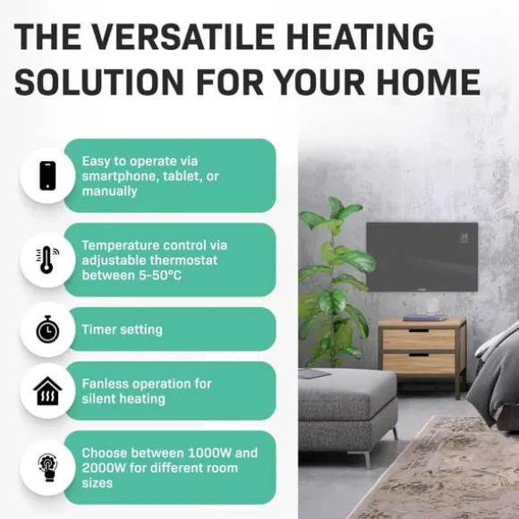 Den här värmaren är inte bara snygg utan den är även fullt utrustad med modern teknik. Med den kostnadsfria ”Tuya Smart Life – appen” kan du justera alla inställningar du vill, vart du vill. Ställ in önskad temperatur med din smartphone eller surfplatta eller ställ in timern exakt som du vill.