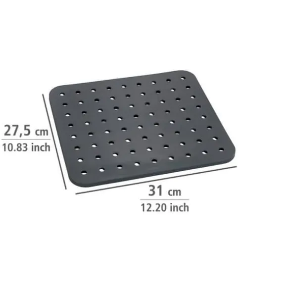 Kristall diskmatta från WENKO är en extra tjock och tung tvättmatta som skyddar diskhon mot repor. Den skyddar också effektivt glas och bestick. Tack vare den speciella geometrin hos hålen minskas stänk av vatten kraftigt vid vattenflödet. De stora avloppshålen gör att tvättvattnet lätt kan rinna av igen.