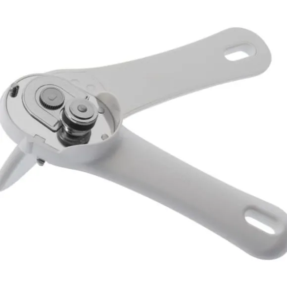 Med den pålitliga konservöppnaren kan du öppna burkar utan ansträngning – och utan risk för skador! För att göra detta, placera öppnaren horisontellt på kanten av burken, tryck ihop spakarna och vrid på vredet – skärhjulet rör sig längs burken och öppnar locket utan vassa kanter! Locket kan enkelt tas av med tången och sättas tillbaka för att stänga burken igen. Färg: vit.