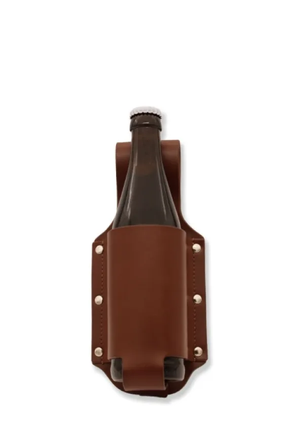 Håll händerna fria och ölen nära med det här läderhöljet. Det är perfekt för flaskor på 0,33-0,5 liter och ser till att din dryck sitter säkert även under plötsliga rörelser.
