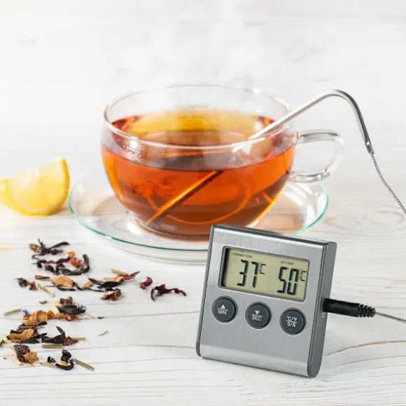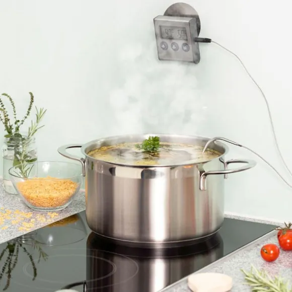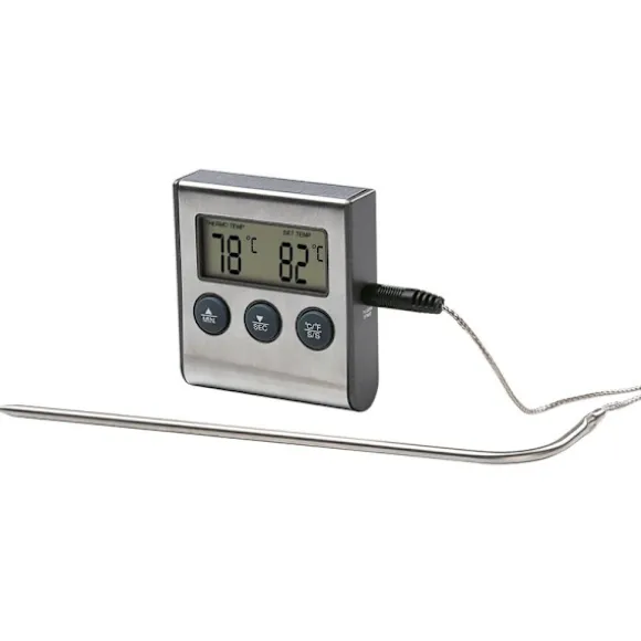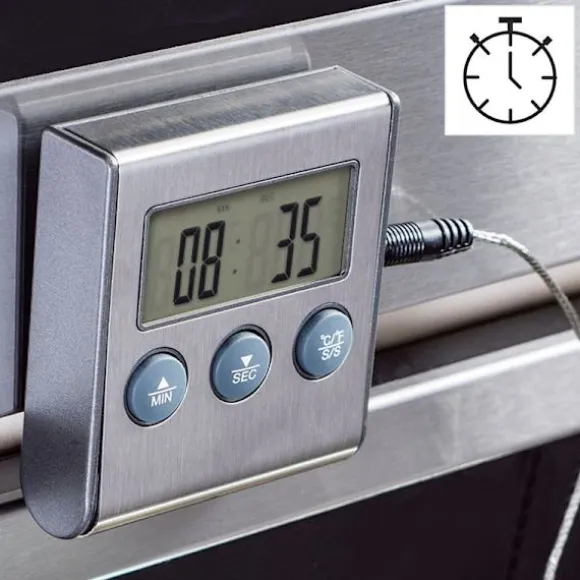 Oavsett om du rostar, bakar eller lagar mat hjälper den här termometern dig att kontrollera olika tillagningsnivåer genom att ställa in en specifik temperatur. Larmet förhindrar att den inställda temperaturen överskrids och ser till att maten inte blir överkokt. Den kan också fungera som en timer, med en nedräknings- och uppräkningsfunktion som kan ställas in i upp till 99 minuter och 59 sekunder.