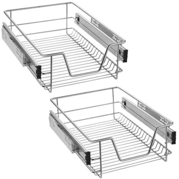 Teleskopisk lådmaterial: förkromad metall, lämplig för 40 cm skåp och lådor. Eliminera röran med unika, platsbesparande utdragbara hyllor med låg profil för enkel åtkomst